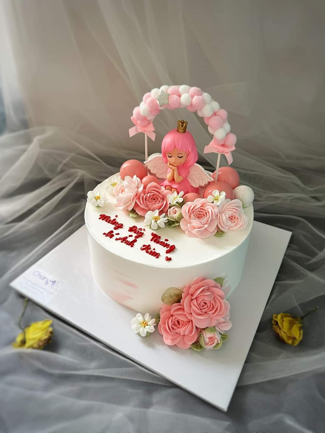 - Bánh kem hoa hồng: Với những bông hồng tươi đẹp được cắm trên bề mặt bánh, chiếc bánh trở nên thật quyến rũ và lộng lẫy.